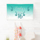 Cute turquoise glitter numbers and hearts over ombre turquoise and white background. Sweet 16. Custom Monogram