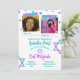 Glittery pink and turquoise Bat Mitzvah invitation with polka dots also has stars of David. Cute square photos with glitter artwork is a popular, cute look for your 13th birthday celebration. Easily upload your photos into the photo frames. The pink and aquamarine gradients are versatile for bat mitzvah colour palettes that include pink, purple, and blue-green. An easy template for any thirteenth birthday party.
