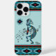 This is a Unique "One of a Kind" Southwest Kokopelli Cell iPhone Case! It Features a Turquoise Kokopelli Playing the Flute with Music Notes and Dancing Under the Sun on a Turquoise Background...Surrounded by a Southwest Border in Turquoise, White and Rust!