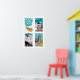 Turquoise Japanese Matchbox Labels Grid Print, Vintage Ephemera Poster, East Asia Collection, Midcentury Style, turquoise wall art 1