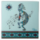 Brighten Your Home with this Unique "One of a Kind" Southwest Kokopelli Ceramic Tile! It Features a Turquoise Southwest Kokopelli Playing the Flute with Music Notes, Dancing around a Cactus Under the Sun on a Turquoise Background...and a Bottom Border in Turquoise, Gold, Rust and White!