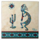 Brighten Your Home with this Unique "One of a Kind" Southwest Kokopelli Ceramic Tile! It Features a Turquoise Southwest Kokopelli Playing the Flute Dancing around a Cactus Under the Sun on a Tan Sandstone Background...with a Bottom Border in Turquoise, Gold, Rust and White!
