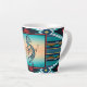 This is a Unique "One of a Kind" Southwest Kokopelli Latte Mug! It Features a Turquoise Kokopelli Playing the Flute with Music Notes Dancing Under the Sun on a Turquoise and Orange Sunset Background....Surrounded by a Southwest Border in Turquoise, White and Rust!