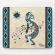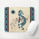 This is a Unique "One of a Kind" Southwest Kokopelli Mouse Pad! It Features a Turquoise Southwest Kokopelli Playing the Flute and Dancing Under the Sun on a Tan Sandstone Background, Surrounded by a Southwest Border in Turquoise, White and Rust...with Music Notes!