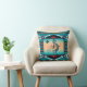 This is a Unique "One of a Kind" Turquoise Kokopelli Throw Pillow! It Features a Turquoise Southwest Kokopelli Dancing and Playing the Flute with Music Notes Under the Sun on a Turquoise and Orange Sunset Background...Surround by a Southwest Turquoise, White and Rust Border!