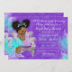 This baby shower invitation template features an African American Baby girl with adorable natural hair afro puffs pony tails with satin lavender bows. Wearing a gorgeous turquoise colour tiara and lavender pearl necklace. Matching items are available upon request.