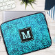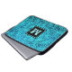 Turquoise leaf pattern monogram bold typography laptop sleeve