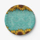 Turquoise Leather Tooled Bright Sunny Sunflowers Paper Plate