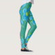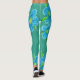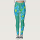 Turquoise with Lime green stylish ladies-wear leggings with a bright blue large scale floral art print. The teal green can be personalised to your own personal colour choice, and flowers are removable. Modern fitted ladies sportswear.