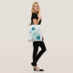 Beautiful tote bag featuring turquoise and light blue flowers and green leaves
