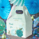 Beautiful wedding favour box featuring turquoise and light blue flowers and green leaves