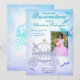 Invite your Quinceañera guests with a glittery horse carriage surrounded by blue and turquoise dragonflies. Watercolor texture with glitter horse carriage will look beautiful with matching invitations, rsvp cards, envelopes, labels, and stickers. Easily add your photo and transfer this whimsical blue dragonfly and horse carriage design to other cards and gifts.