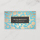 Turquoise Linen Gold Circles Look Beauty Salon 2 Business Card