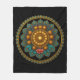 Turquoise Lotus Mandala - Black Boho Graphic Art Fleece Blanket