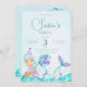 Featuring a whimsical design adorned with a graceful purple-haired mermaid and tranquil turquoise sea waves, this invitation captures the essence of oceanic beauty and fantasy. As guests lay eyes on its mesmerising imagery, they'll be transported to a realm where mermaids dance among shimmering waves and dreams come to life.