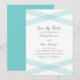 Simple and elegant Modern Deco Save the Date Invitation with a striped criss-cross hatched art deco design in turquoise. This classic save the date announcement can be easily customised with your wedding details. For more customisation options, click on the Customise It button.