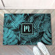 Turquoise monogram tropical palm pattern modern doormat