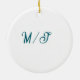 Turquoise monogram wedding couple name simple styl ceramic ornament