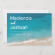 Beach Wedding Save the Date Featuring Deep Turquoise Teal Blue Ocean Waves crashing on a soft sand beach with modern and minimalist typography, and space to upload 1 engagement photo on the back. The wedding date announcement card is a gorgeous tropical beach photo that will entice guests to come and spend the weekend celebrating your wedding on the coast.