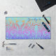 Turquoise and ombre rainbow Fantasy Butterfly desk mat you can personalise that I created using one of my fantasy landscape drawings. I have recently begun creating again after the death of my first husband in 2022. I was inspired by a free class I found on FaceBook to free your creativity and I have been creating almost everyday since and I wanted to share this with the world. I hope you enjoy my efforts in your office of home. Thanks for looking.
