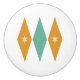 This colourful mid century modern ceramic knob features turquoise blue and orange diamonds with cream coloured stars. So fun to add to your dresser or night stand!