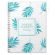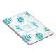 Elegant and modern turquoise-blue tropical palm leaves pattern. White background accented with small dots in colour of leaves.