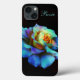 Pretty turquoise blue, purple, pink and gold rose on a iPad Mini case you can Personalise