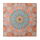 Turquoise Peach Orange Red Mandala Sun Pattern Tile