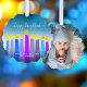 Turquoise Photo Hanukkah Menorah Candles Modern Tree Decoration Card
