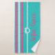 Turquoise & Pink Script Stripes Rope Custom Bath Towel. Simply edit text to personalise!