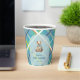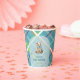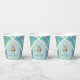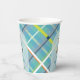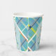 Welcome your little one with timeless charm. This baby shower paper cup features a sweet teddy bear with a blue ribbon. The background showcases a fresh turquoise blue plaid background accented with lime green, white, and orange for a modern twist on a classic pattern. Perfect for those who love a sophisticated yet cosy look, this paper cup blends tradition with just the right dash of contemporary flair.