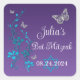 Turquoise, Purple Floral, Butterflies Bat Mitzvah Square Sticker