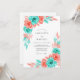 This design features a vibrant wash of watercolor blooms in striking shades of turquoise and coral pink. Lush ranunculus and delicate roses are paired with soft, painterly foliage to create a spirited atmosphere for a warm-weather event. The airy white background allows the saturated pigments to pop, evoking a sense of modern romance and artistic flair.