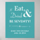 Turquoise Retro Eat Drink Be Seventy 70th Birthday Poster