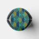 This can cooler has a mid-century modern design of ovals in teal with semi-circles in green and navy inside them on a field of turquoise.