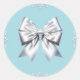 Turquoise Robin's Egg Blue Big White Bow Bridal Classic Round Sticker