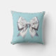 Turquoise Robin's Egg Blue Big White Bow Bridal Cushion