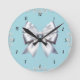 Turquoise Robin's Egg Blue Big White Bow Bridal Round Clock