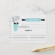 Fun retro bridal shower kitchen recipe cards featuring a turquoise blue rolling pin & kitchen tools. The front of our recipe card offers room for a recipe title, from the kitchen of and ingredients space. Flip our recipe card over to view our lined back for recipe directions. Visit our shop for matching bridal shower invitations & recipe binders available in our shop in a large assortment of popular wedding shower colours. Perfect bridal shower invitation insert for a stock the kitchen bridal shower.