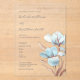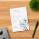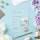 This elegant artistic minimalist wedding invitation features contemporary white 3 dimensional turquoise and rose gold flowers.