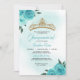 Turquoise Roses Golden Tiara Quinceañera Birthday Invitation