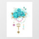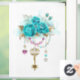 Antique gold key with trendy turquoise roses decorated with leaves of white gold and pink and blue beads. Fashionable colour. Turquoise roses. White gold. Blue tiffany.