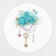 Antique gold key with trendy turquoise roses decorated with leaves of white gold and pink and blue beads. Fashionable color. Turquoise roses. White gold. Blue tiffany.