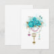 Antique gold key with trendy turquoise roses decorated with leaves of white gold and pink and blue beads. Fashionable colour. Turquoise roses. White gold. Blue tiffany.