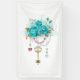 Antique gold key with trendy turquoise roses decorated with leaves of white gold and pink and blue beads. Fashionable colour. Turquoise roses. White gold. Blue tiffany.