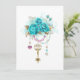 Antique gold key with trendy turquoise roses decorated with leaves of white gold and pink and blue beads. Fashionable colour. Turquoise roses. White gold. Blue tiffany.