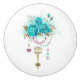 Antique gold key with trendy turquoise roses decorated with leaves of white gold and pink and blue beads. Fashionable colour. Turquoise roses. White gold. Blue tiffany.