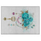 Antique gold key with trendy turquoise roses decorated with leaves of white gold and pink and blue beads. Fashionable colour. Turquoise roses. White gold. Blue tiffany.