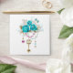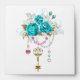Antique gold key with trendy turquoise roses decorated with leaves of white gold and pink and blue beads. Fashionable colour. Turquoise roses. White gold. Blue tiffany.