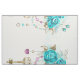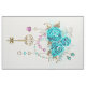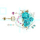 Antique gold key with trendy turquoise roses decorated with leaves of white gold and pink and blue beads. Fashionable color. Turquoise roses. White gold. Blue tiffany.